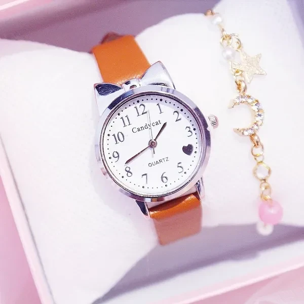 New Casual Women Watches Cute Cat Ear Lady Bracelet Watch Fashion Leather Band Quartz Wristwatch Clock Montre Femme Relogio