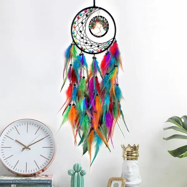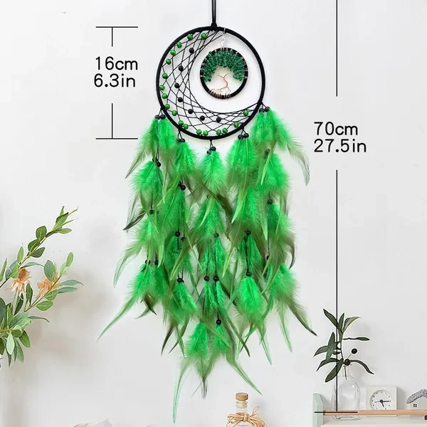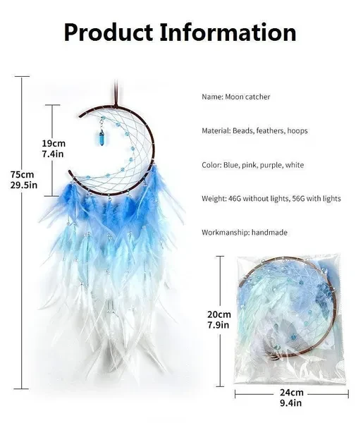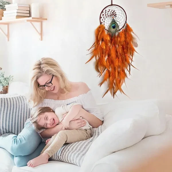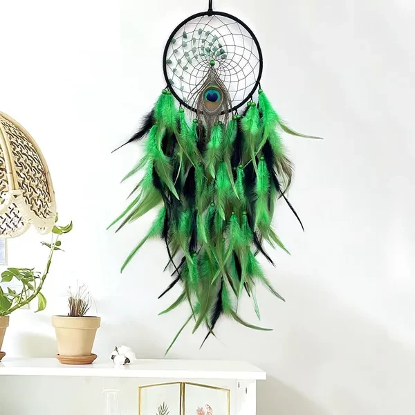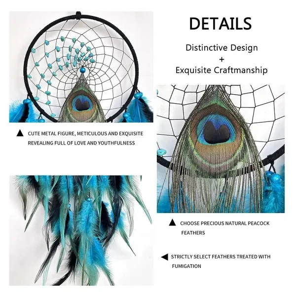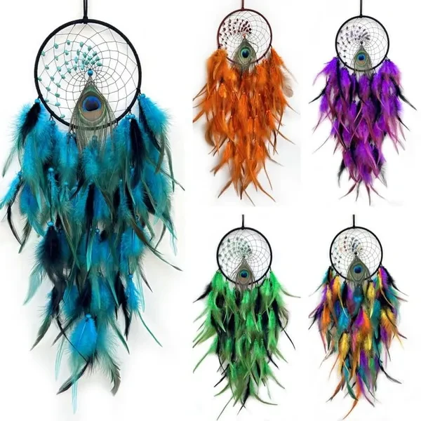 New Colorful Peacock Feather Dream Catcher Home Garden Decorative Crescent Dream Catcher Handicraft Home Living Room Bedroom Wall Hanging Decoration Tree of Life Dreamcatcher Wind Chimes