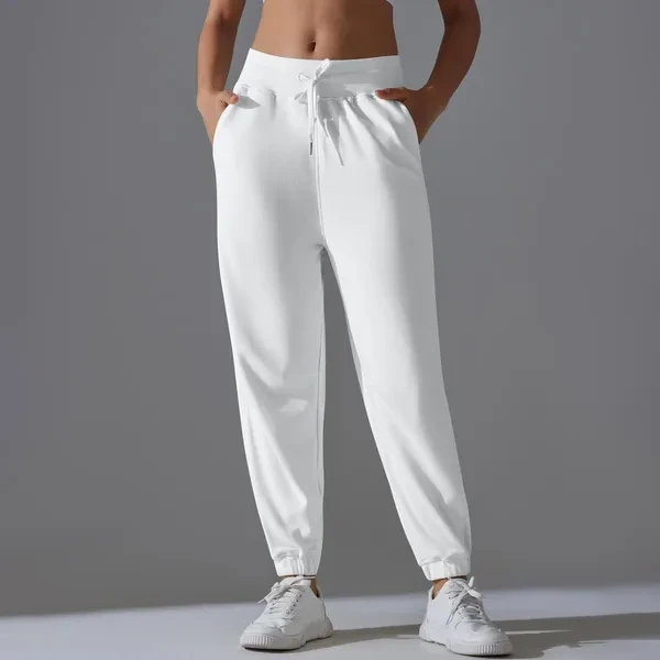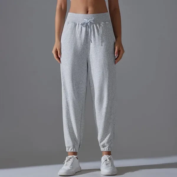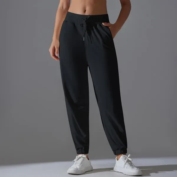 New Drawstring Solid Color High Elasticity Track Sweatpants Training Breathable And Loose Yoga Pants Running Workout Ankle Length Pants Women