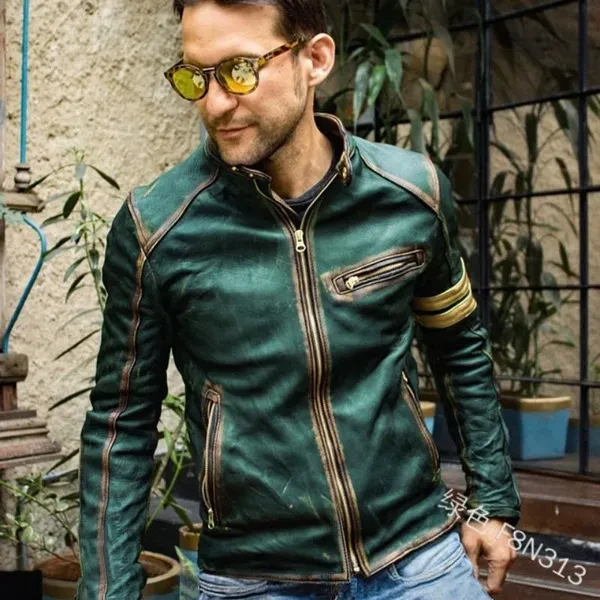 New Fashion Slim Fit Standing Collar Motorcycle Leather Coat Men's Jacket Fashion Men's Wear