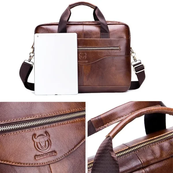 New Men Briefcases Genuine Leather Handbag Vintage Laptop Briefcase Messenger Shoulder Bags Men's Bag