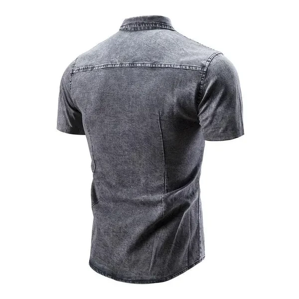 New Mens Casual Shirts Slim Fit Short Sleeves Dress Denim Shirts Jeans Tops