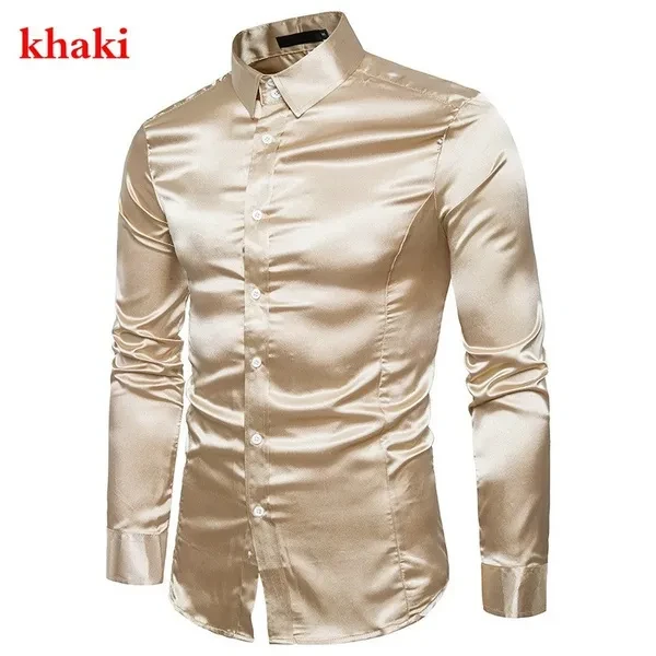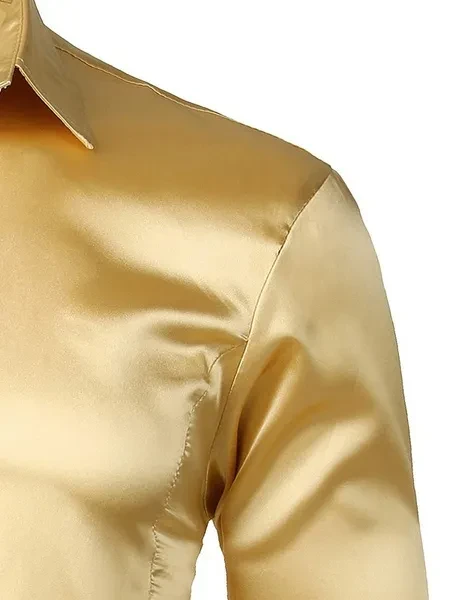 New men's long-sleeved shirt business casual casual fashion shiny long-sleeved shirt lapel button long-sleeved fashion slim business shirt
