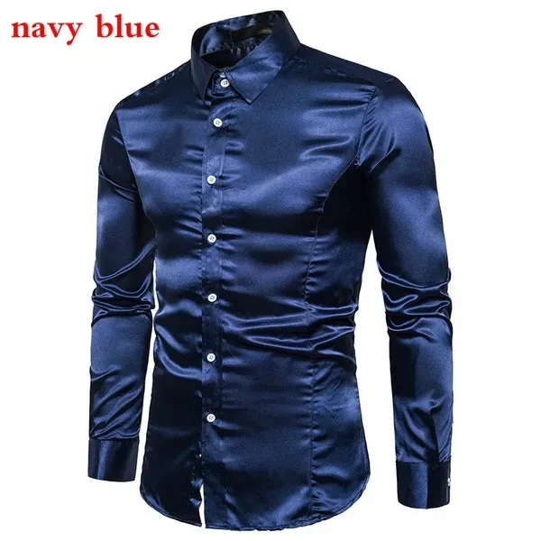 New men's long-sleeved shirt business casual casual fashion shiny long-sleeved shirt lapel button long-sleeved fashion slim business shirt