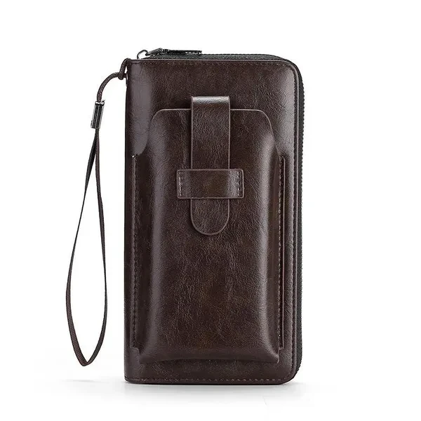 New Men's Wallet Long Leather Wallet Large Capacity Multifunctional Wallet Men's Business Zipper Mobile Phone Bag