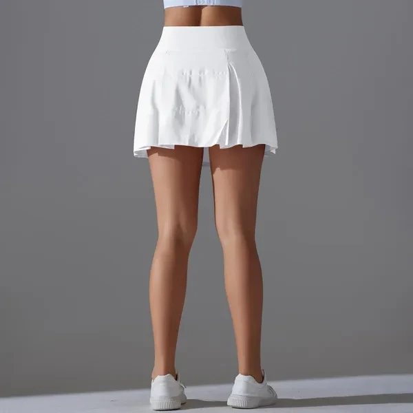 New Solid Color Double-Sided Nylon Tight High Waist Fake Two-Piece Tennis Sports Skirt Running Fitness Yoga Shorts Women