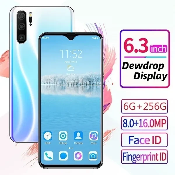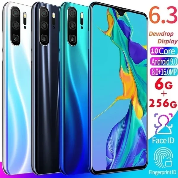 NEW Upgrade P30 Pro 6.3 Inch Screen Android Phone 6GB+256GB Bluetooth Wifi 8MP+16 MP Dual Camera Mobile Phone 10 Core 4G Smart Phone