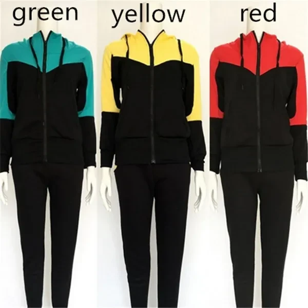 New Women Color Stitching Hooded Coat Tracksuit Lady's Casual Cotton Sport Suit Hoodies Loose Jogger Suit