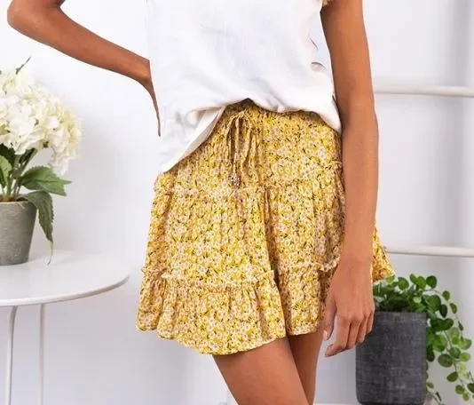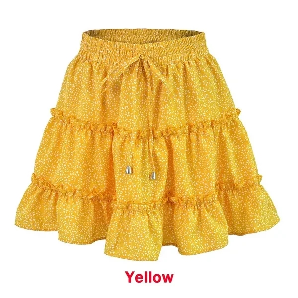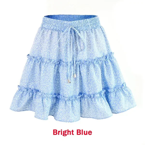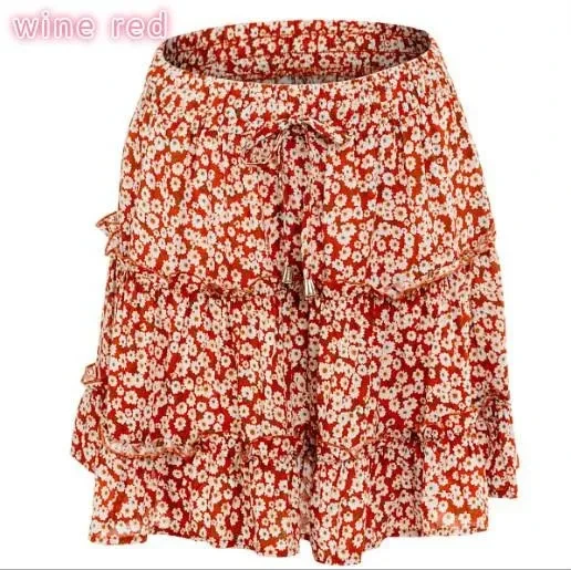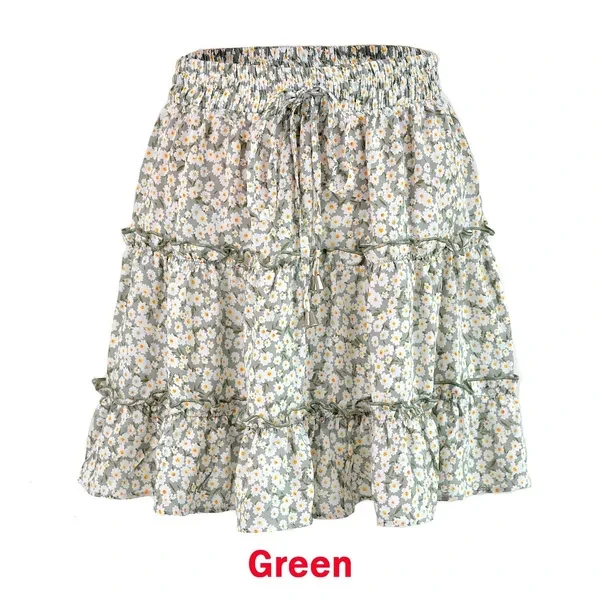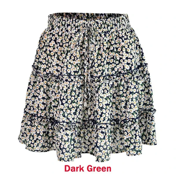 New Women Fashion Casual Floral Short Skirts Summer High Waist Pleated Beach Skirt