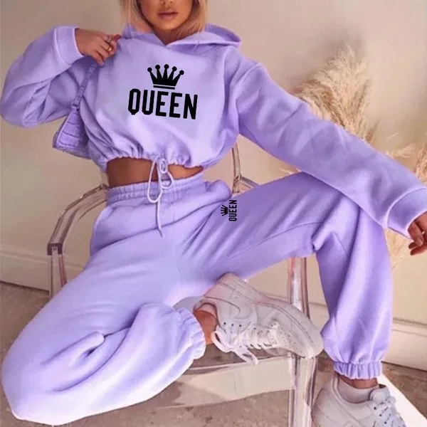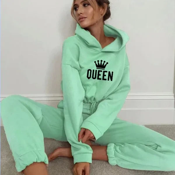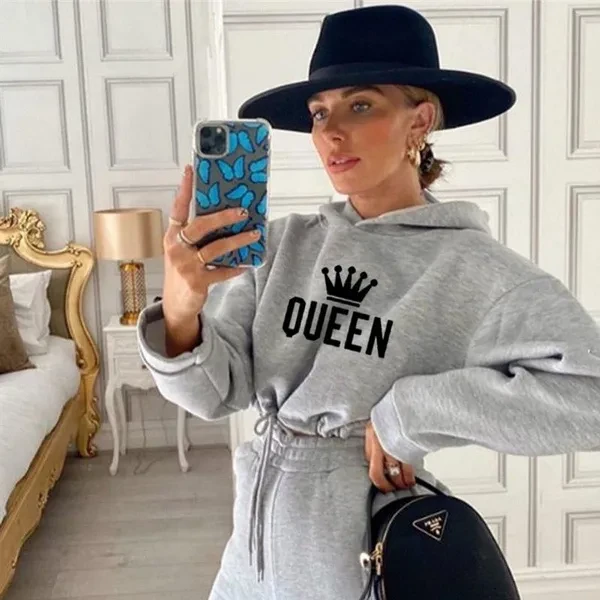 New Women Queen printing Tracksuit Oversized Hoodie and Pants Casual Sport Suit Winter 2 Piece Set 8 Colors Jogging Suit