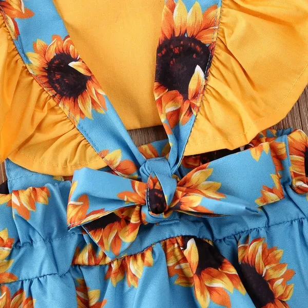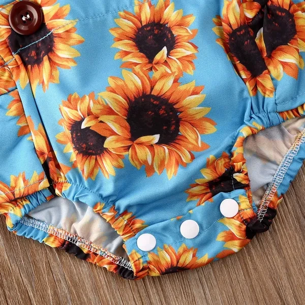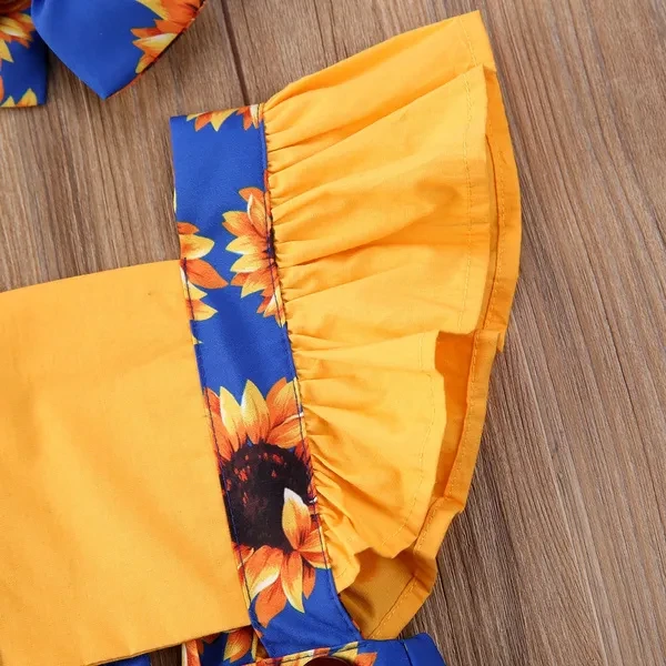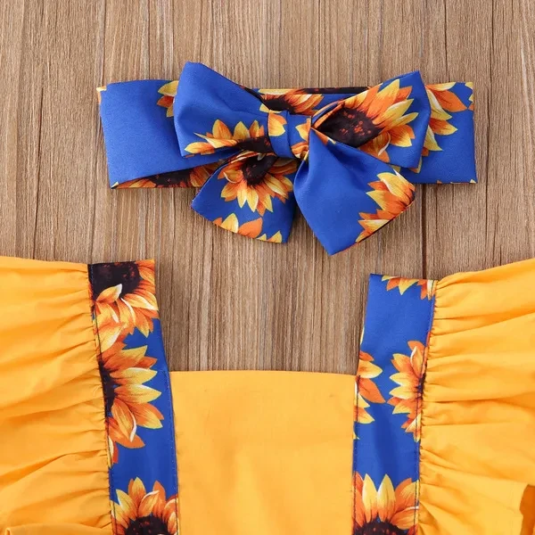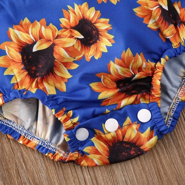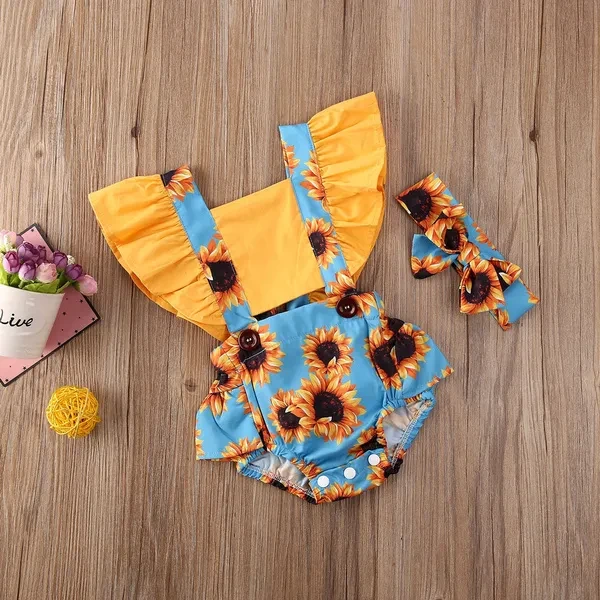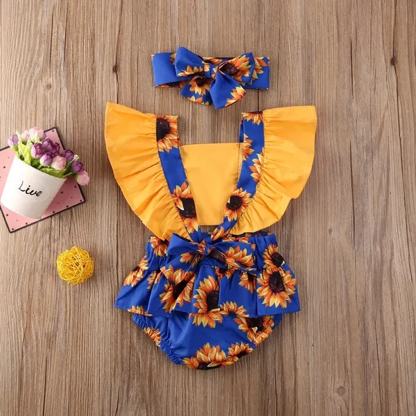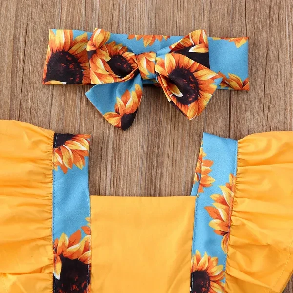 Newborn Infant Baby Girl Sunflower Romper Jumpsuit 2Pcs Outfit Clothes