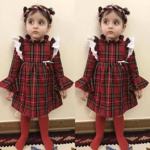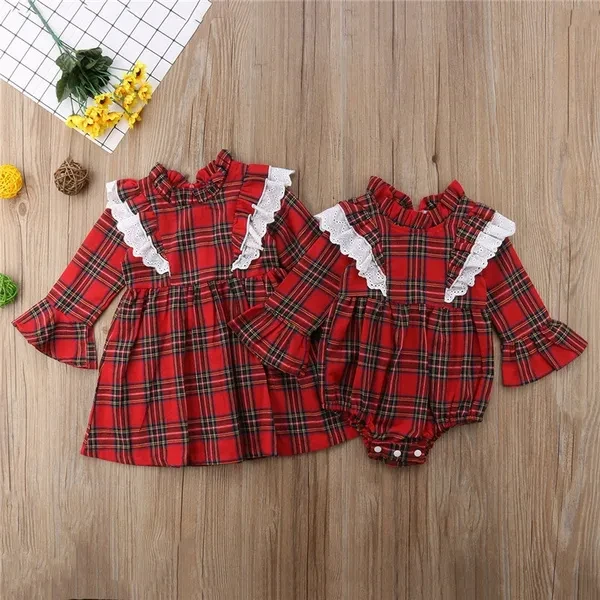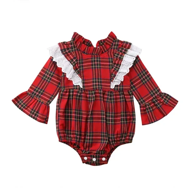 Newborn Kids Baby Girls Lace Plaids Romper Bodysuit Dress Outfit Clothes Set