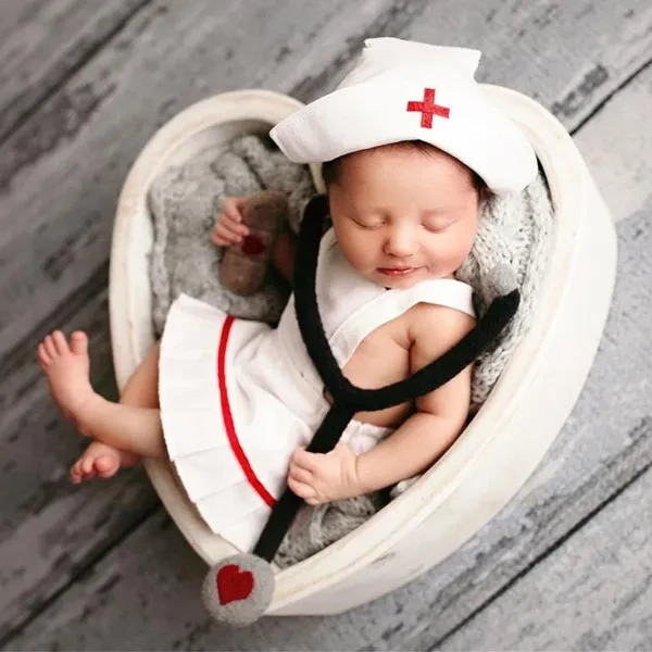 Newborn Nurse Costume Hat Clothing Set Photo Clothes Photo Props 0-12M Baby Photography Outfit Baby Shower Gift YIY