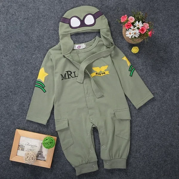 Newborn Toddler Baby Boy Children Clothes Rompers+Hat Cap Jumpsuit Outfits Green