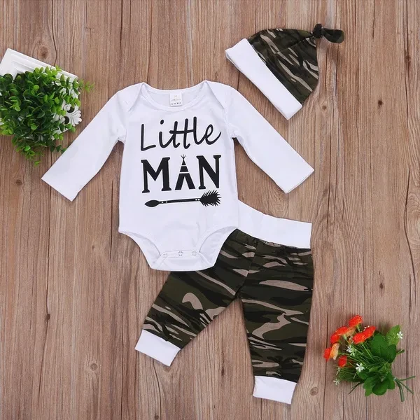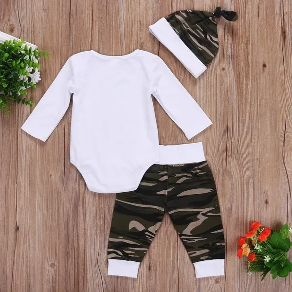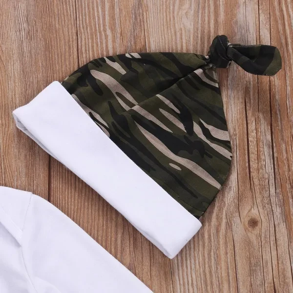 Newborn Toddler Baby Boys Camouflage Tops Romper Pants Hat Outfits Set Clothes 0-18M