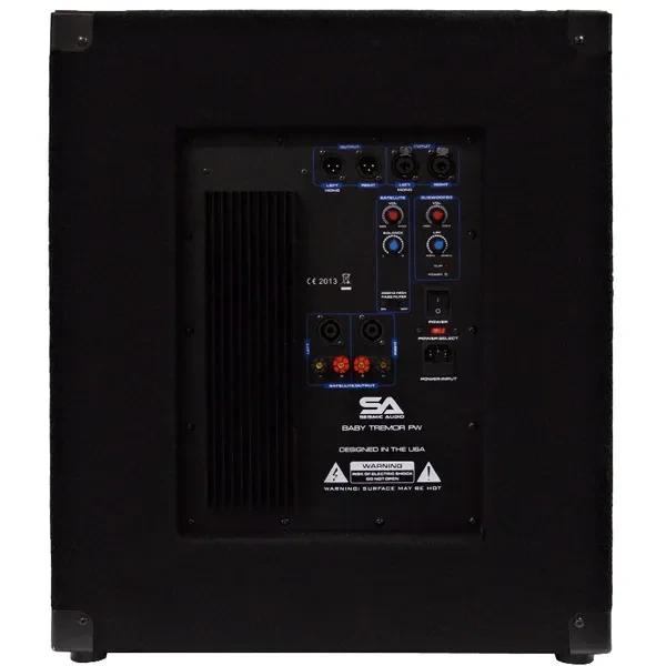 MODEL: Baby Tremor PW (Pair) CONTENTS: Pair of Powered 15" Subwoofer Cabinet CONDITION: New APPLICATION: Subwoofer / PA Subwoofer / DJ Subwoofer ACTIVE/PASSIVE: Powered / Active WOOFER: 15" WOOFER SPECS: 70 oz Magnet and 3" Voice Coil POWER: 300 Watts RMS; 600 Watts Peak FREQUENCY RESPONSE: 35 Hz - 800 Hz SENSITIVITY: 98 dB SPL: 108 dB - Continuous LPF (LOW PASS FILTER): 40 Hz - 300 Hz CONNECTORS: Two Line Input/Output - XLR Combo / Male XLR NOMINAL IMPEDANCE: 8 Ohms PORTS: Yes GRILL: Full Metal Grill HANDLES: Recessed Metal COVERING: Black Carpet with Black Metal Corners ENCLOSURE: 5/8" Plywood Construction POLE MOUNT: Yes HEIGHT: 23.25" WIDTH: 20.75" DEPTH: 19.75" WEIGHT: 73 lbs per Cabinet WARRANTY: One Year Warranty SPECIAL FEATURES: Can be Daisy Chained SPECIAL FEATURES: 3 Channel Amplifier Built In AMPLIFIER TYPE: Class AB POWER SELECT: 110V-120V or 22V-240V Power Supply SPECIAL FEATURES: Two Channel Satellite Power Output - 8 Ohm - 2 x 150 Watts SPECIAL FEATURES: Balance, Clip Indicator Light, Power Indicator Light SPECIAL FEATURES : Separate Sub and Satellite Volume - Switch for 200 Hz High Pass Filter
