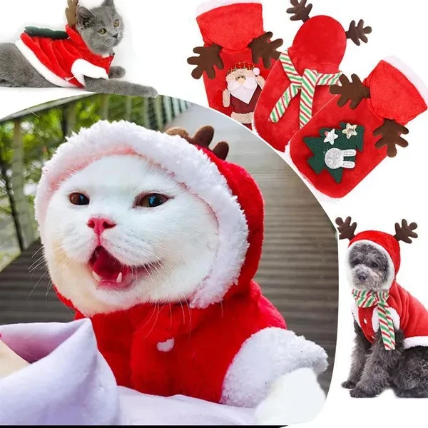 Pet Cats Dogs Christmas Clothes Winter Chihuahua Pug Costume Flannel Warm Elk Festive Coat Puppy Accessories Pet Clothing