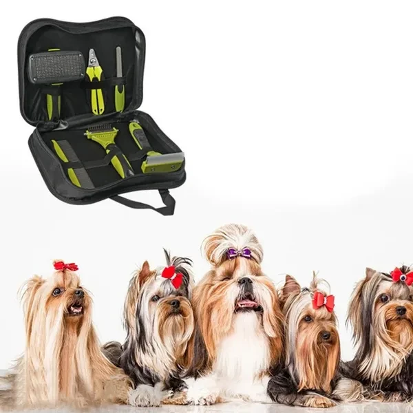 Features: Pet Nail Clipper,Hair Clipper For Dogs,Shedding Tool,Dematting Tool For Dogs,Knott combs, straight row combs, nail scissor, file, hair trim, hair removal combs, cleaning and beauty setHair Dogs Hair Clipper,Pet Hair Trimmers Combs Cutting Dogs With Grooming ,Cats Grooming Clipper,Pet Nail Grinder,Multi-function pet hair trimmers Density double teeth, relieve seasonal hair loss, remove floating hair Double-sided detangling combs, quickly cuts knott hair Smooth hair massage, round needle massage does not hurt the skin, combs pet hair Handbag design, convenient storage, easy to carry Specifications: Material:Plastic/TPR/Metal Size:Approx. 29.5cm/11.61in Color:black&green Note: Please allow 1-2cm errors due to manual measurement, make sure that you donot mind before you order. Due to difference between different monitors, the picture may not reflect the actual color of the item. Package includes: 6pcs/set Pet Hair Trimmers