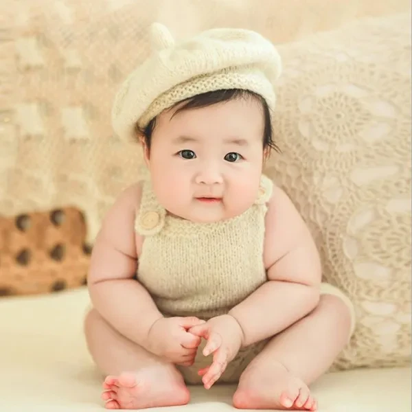 Photoshooting Props for Baby Shower Gift Newborn Costume Beanie Hat Romper Photo Posing Clothes Infant Photo Accessories GFA