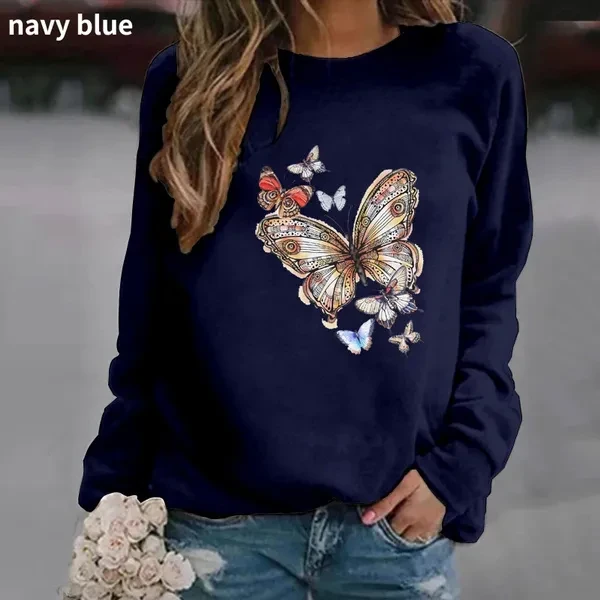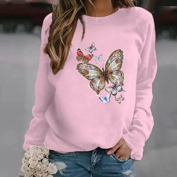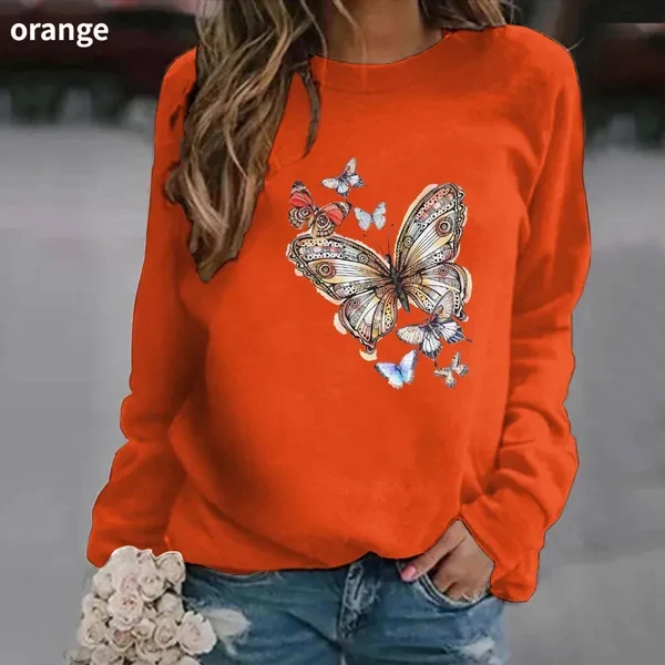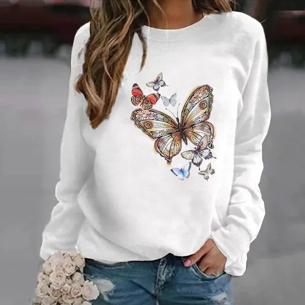 Popular Butterfly Printing Hoodless Sweatshirts For Women Autumn Winter Fashion Casual Solid Color Ladies O Neck Sweater