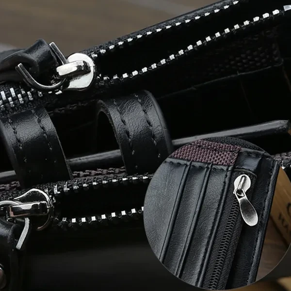 Features: ✿PU LEATHER WALLET -- The pu wallet looks beautiful, easy to clean, soft in texture, and very durable. ✿DOUBLE ZIPPER CREATIVE DESIGH -- Double zipper independent pocket,according to your needs convenience storage classification,fashion,clean and tidy. ✿FUCTIONAL CAPACITY -- Photo slot, zipper compartment, bill holder, card slot, secret compartment, change slot, check slot, etc.And you can use it in any occasion such as casual,school day,business and so on. ✿HIGH QUALITY COIN PORKET -- Metal zipper,rigorous testing procedures,fine workmanship and smooth wearable.Coin is portable,easy carry and storage. ✿A GREAT PRESENT: This Wallet is an essential for anyone on the go, especially for the men you caring about, for your boys, lover, honey, dear, sweetheart, Dad, boyfriend, father, grandpa friends as a Birthday, Valentine's Day, Anniversaries, Father’s Day, Thanksgiving, Christmas, Graduation Gift Size:12 * 10 * 3 cm ( Note 1. 1 Inch = 2.54CM; 1CM = 0.39 Inch ) Tips: ( Due to the different measurement methods, the bag size may have 1.0-2.5cm tolerance ) Package Including: 1 x Men Wallet