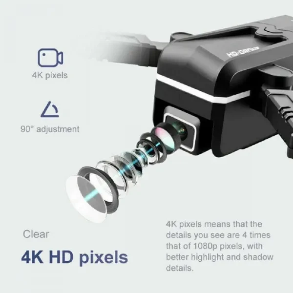 Feature of product 1: Mini folding, small size and easy to carry. 2: With the function of altitude holding mode, the flight is stable. 3: In headless mode, there is no need to adjust the position of the aircraft before flying. 4: Use the one-key return function to easily find the way home. 5: Built-in 4K pixel high-definition camera, surprisingly, it can capture stunning pictures and videos from the sky. 6: With Wi-Fi function, it can be connected to applications and APK systems, and take pictures, video, and real-time transmission through mobile phone camera images. 7: Draw a flight path on the screen, and the drone will fly autonomously along the specified path. 8: 2.4GHz anti-jamming technology. 9: 4 channels, which can carry out ascent, descent, forward, backward, left flight, right flight and left and right roll. 10: Six-axis gyroscope, the flight is more stable and the control is more convenient. 11: LED lights make the flight more spectacular, especially in the dark. Functions: up/down, forward/backward, left/right turn, side flight, LED lights, headless mode, one-key automatic return, altitude hold mode, Wi-Fi FPV Model: KK1 drone Product Size Folding: 8.5*8*4 CM Expand: 18*15*4 CM Product color: black Product material: plastic metal electronic components Number of channels: 4 channels 6-axis gyroscope Motor model: 716 Coreless motor Remote control distance: 80-100 meters Return distance: 30 meters Remote control mode: left hand throttle Lens angle: 90° Image transmission signal: Wi-Fi transmission Folding: 8.5*8*4 CM Expand: 18*15*4 CM Receiving frequency: 2.4G Appearance: folding drone Body battery: 3.7V 650Mah lithium battery Charging time: 60 minutes Charging method: USB cable charging Flight time: about 15 minutes Resolution: 4K/4K dual camera A set of drone equipment
