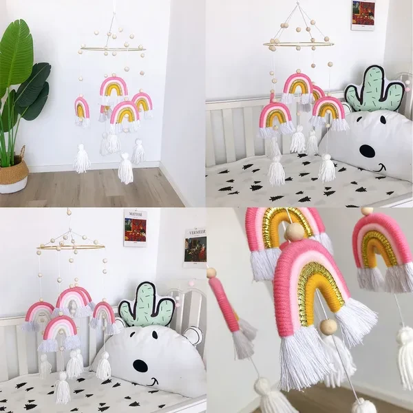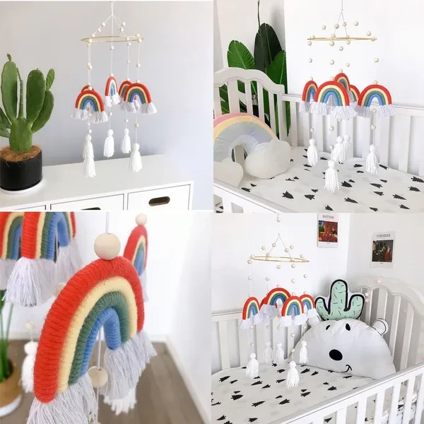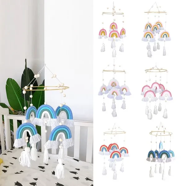 Rainbow Hanging Handmade Weaving Ornament Nordic Baby Kids Room Wall Decor Baby Rattle Mobile Toys Crib Toy BAL