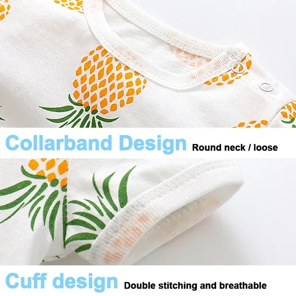 Size chart: Size / Recommended Height / Length / Bust / Shoulder Widt / Leg Circumference / Hip Circumference 0-6 months 66cm 42 50 21 24 58 6-12 months 73cm 45 52 22 24 60 12-18 months 80cm 48 54 23 26 62 18-24 months 90cm 51 56 24 28 64 Hello, welcome to my shop! Our products are ready stock, we will arrange shipments for you within 24 hours. We ship from China, it usually takes 15-40 days to arrive. If you have any questions, please contact me via chat. Please delay your response during public holidays. Thank you! Q: Is it available? Is it in stock? A: All those who can order are in stock. Q: When will it be shipped? A: Shipped on the same day, and also on Saturday and Sunday. Introductions: As a new mother, it is very important for you to choose a suitable baby romper for your beloved son from the various products on the market! Now please pay attention to these Baby Boy Pure Cotton Triangle Short Sleeve Jumpsuits Rompers which are highly recommended to you. It is made of high quality material, durable and great for wearing for a long time. The cute pattern and color will let your baby look lovely and energetic. The simple design allows you to change diapers for your baby easily. What's more, it touches softly and gently, which will not hurt baby's tender skin. It will be the best choice for you to choose to your baby! Features: 1. New and high quality. 2. Easy for changing diapers. 3. So lovely elegant dress is perfect to wear in any occasions. 4. It touches very softly and gently, so that it will not hurt the tender skin of the baby, it is absolutely the best choice of caring mommy. 5. This design is very lovely and matches with the lovely little baby very well. Specifications: 1. Color & Pattern: 7 colors 2. Material: Cotton 3. Size: 0-24M 4. Suitable for: Baby Boy & Girl 5.Item Type: Sleeveless Rompers 6.Pattern Type:Cartoon 7.Closure Type:Covered Button 8.sleeve:Short sleeve 9.Collar:O-neck 10.pattern:Print 11.Fit:Fits true to size, take your normal size 12. Washable: Yes Package Includes: 1 x Rompers Size chart: Size / Recommended Height / Length / Bust / Shoulder Widt / Leg Circumference / Hip Circumference 0-6 months 66cm 42 50 21 24 58 6-12 months 73cm 45 52 22 24 60 12-18 months 80cm 48 54 23 26 62 18-24 months 90cm 51 56 24 28 64