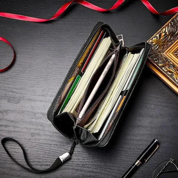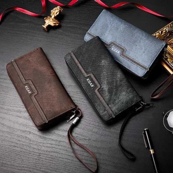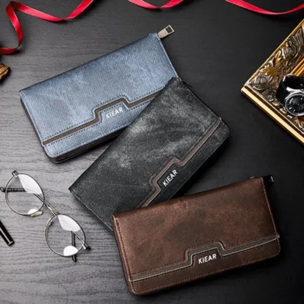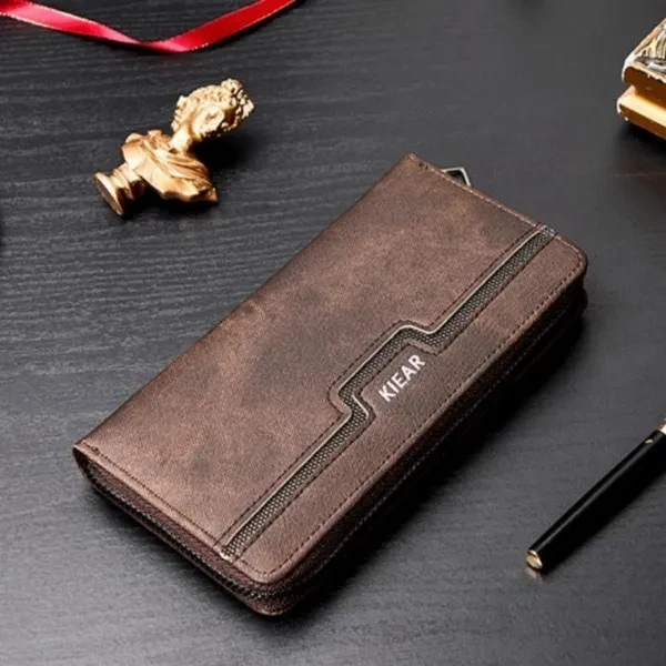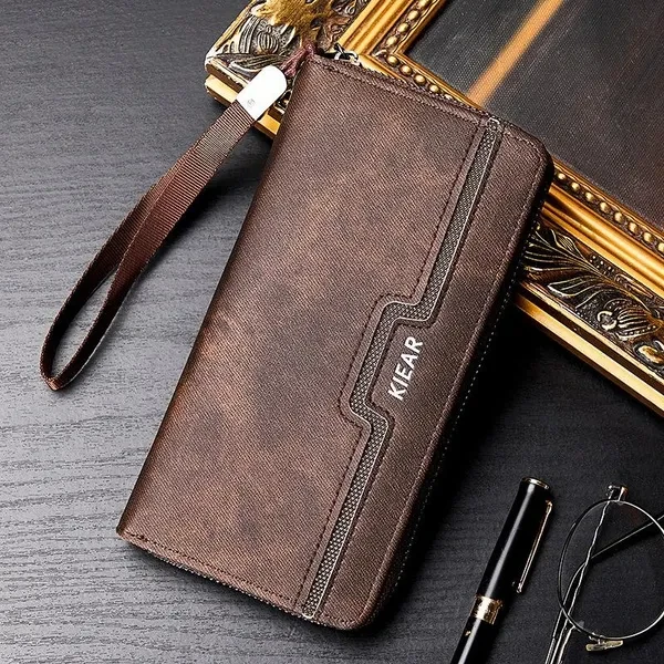 Retro Men Long Wallets PU Leather Zipper Multi-cards Holder Long Purse Clutch Bags