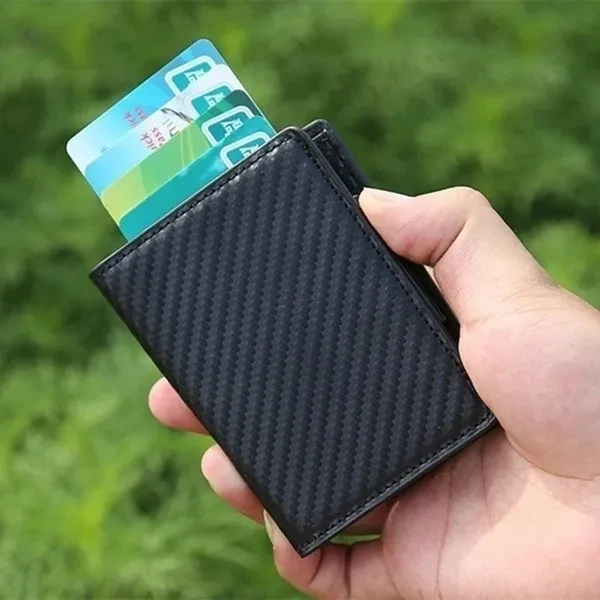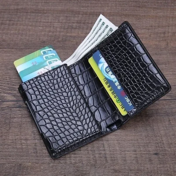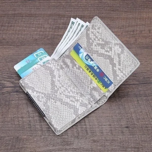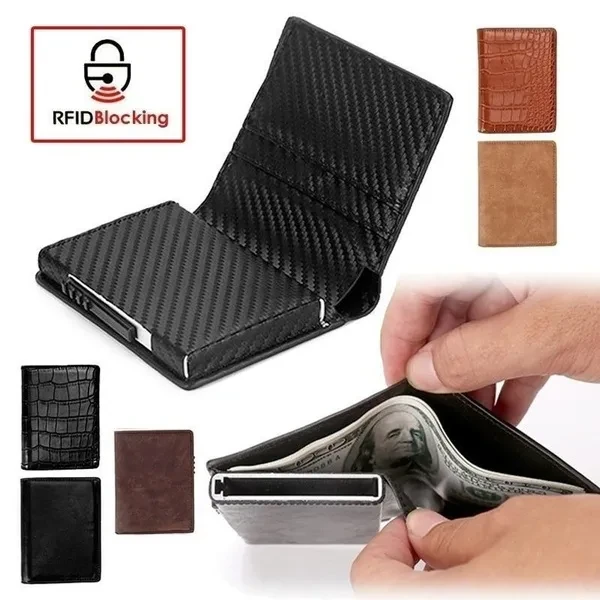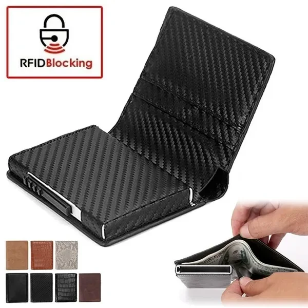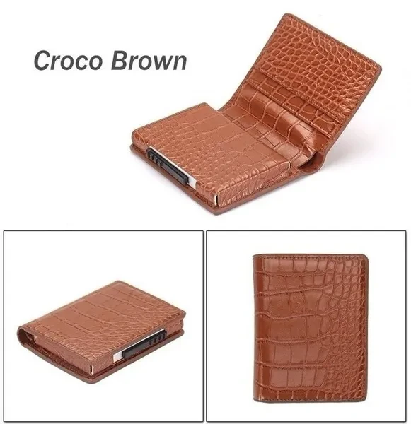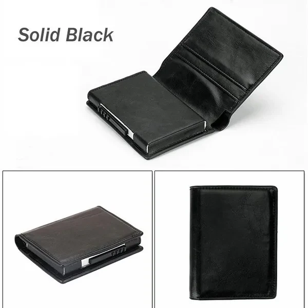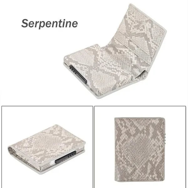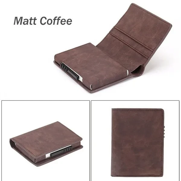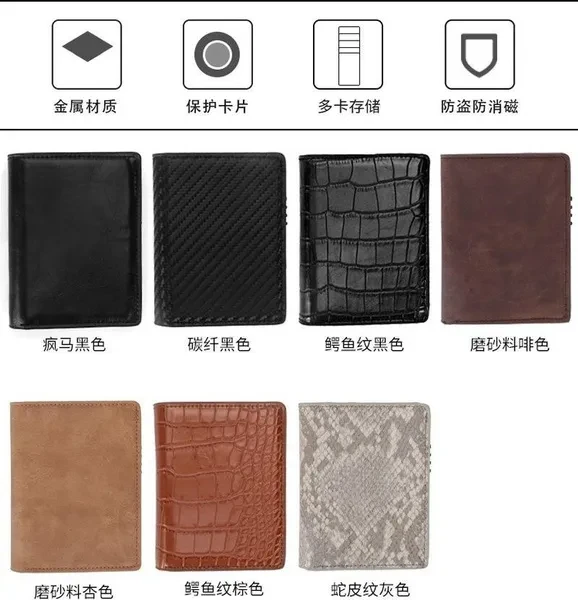 Specifications: Color: Material: aluminum alloy, PU Thickness: 18mm Card capacity: 10-12 sheets Size: 10.2*7.2*1.8cm Features: - The anti-theft in the electronic information era begins with preventing data theft, RFID anti-electromagnetic RF scanning function, and electronic pick-ups cannot obtain bank card information by scanning the wallet, which can effectively protect personal information and fund security. - The finger is gently dialed, the card is automatically ejected, and the card is discharged in order. The size of the card pack is small and the capacity is large. The surface of the card pack is made of high-quality leather and has a good appearance. It can store bank cards, ID cards and other cards. Package includes: 1* card package