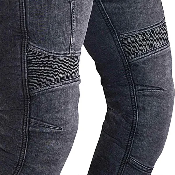 Experience next level of comfort with this biker men jeans pant, made of a heavy duty stretch denim, reinforced with aramid fiber lining, elasticated panels on knee andrear for ultra comfort which makes this jeans pant a perfect pick for casual street riding or touring while removable CE armors for knee and hips leaves you with nothing to worryfor your protection when on two wheels. Features: -Heavy duty stretch Denim fabrics -Reinforced with aramid fiber lining throughout impact areas - hip, thighs and knees -Elastic panels on knees and back for added comfort -YKK zipper fastening -Internal CE standard armor pockets -Regular fit cut -Comes with complementary removable CE standard Armor -Available in a variety of colors (Browse our collection to pick your favorite one) Material: -98% cotton and 2% spandex -Lined with 100% DuPont Kevlar fiber -100% Polyester mesh lining -YKK zippers Package Includes: -1 xMotorcycle RidingJeans Pant -1 x Set of CE standard armors (Hip and Knee pads) DuPont and Kevlar are trademarks of affiliates of DuPont de Nemours, Inc.