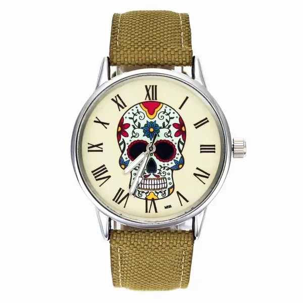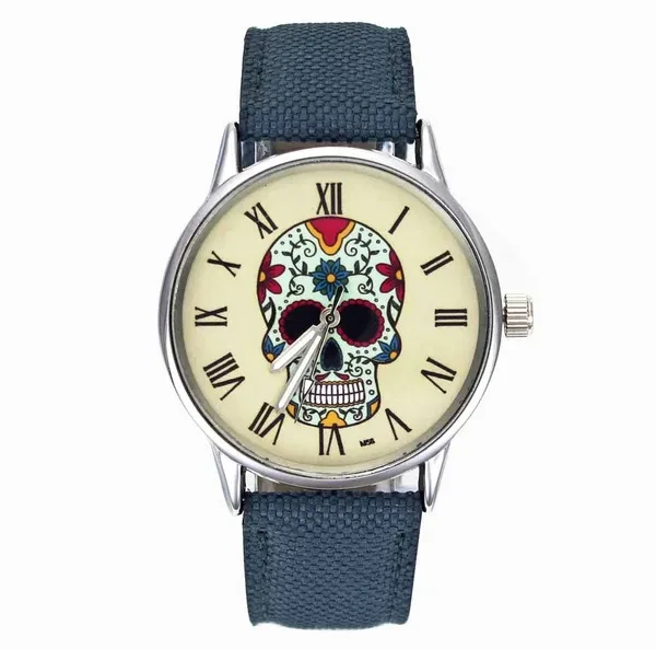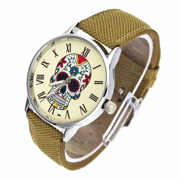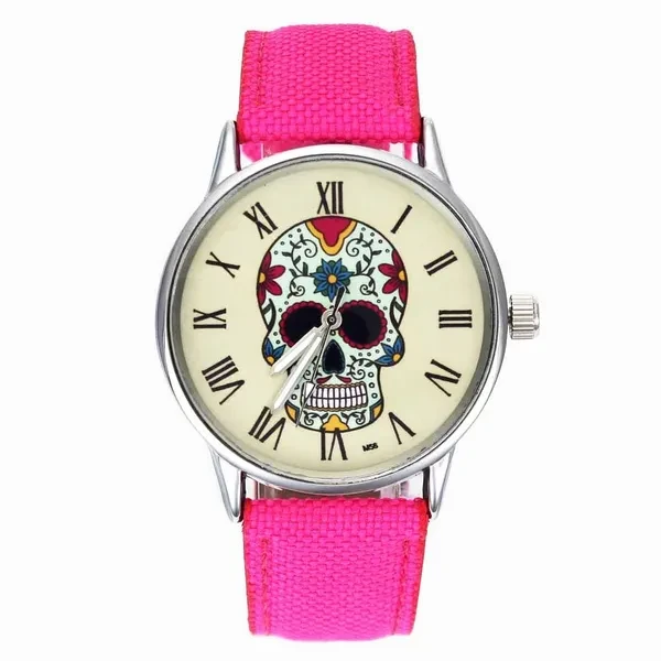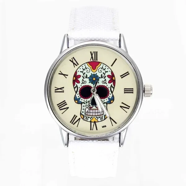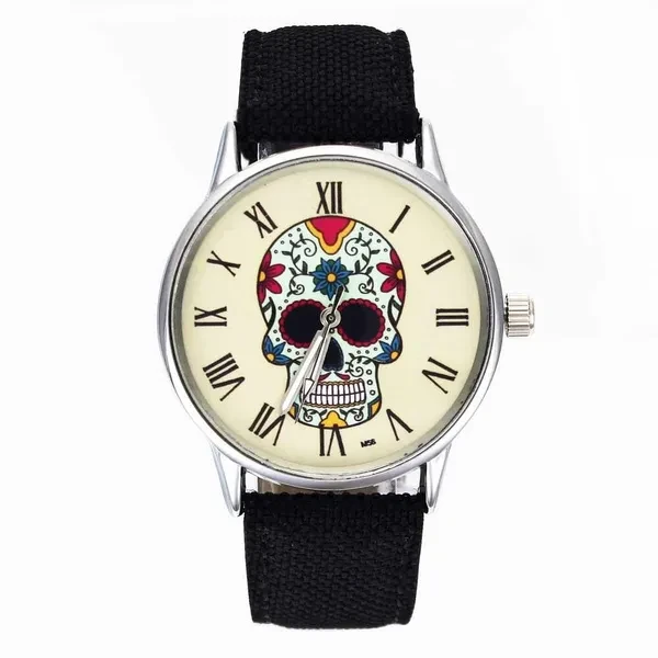 Rose Flower Skull Skeleton Ghost Dial Women Men Fashion Jewelry Black White Canvas Band Deals Cheap Analog Quartz Wrist Watch