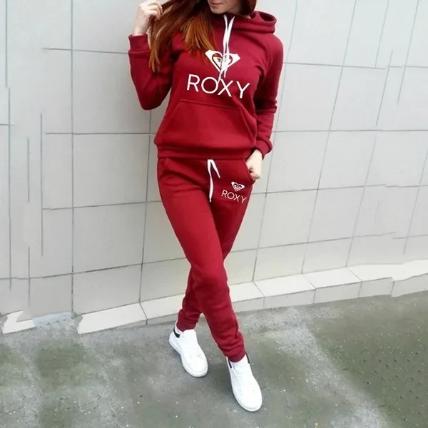 ROXY-Womens NEW Women Fashion Two Pieces Tracksuit Set Printed Sport Suit Autumn/winter Hoodie + Trousers Set Jogging Suit Long Sleeves Tops+ Long Pants Suit Plus Size S-4XL