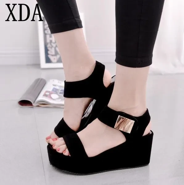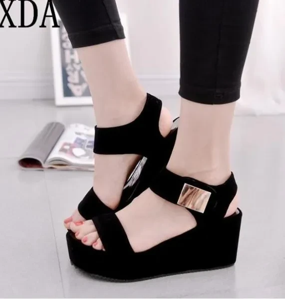 epartment Name:: Adult tem Type:: Sandals pper Material:: Flock ith Platforms:: Yes utsole Material:: Rubber latform Height:: 3-5cm tyle:: Rome ide Vamp Type:: Open andal Type:: Gladiator nsole Material:: Bonded Leather ining Material:: Bonded Leather ack Counter Type:: Ankle Strap eel Height:: High (5cm-8cm) odel Number:: women shoes eel Type:: Wedges losure Type:: Hook & Loop ccasion:: Casual it:: Fits true to size, take your normal size ashion Element:: Bling attern Type:: Solid rand Name:: XDA