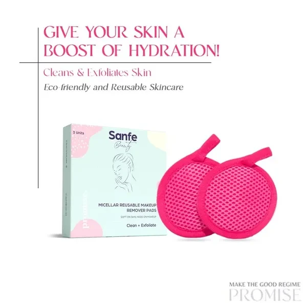 Sanfe Beauty Micellar Pack of 3 | 2 in 1 Reusable Makeup Remover and Face Exfoliating Pads | Effectively & Gently Removes and Exfoliates Face & Eye Makeup | Suitable for All Skin Types