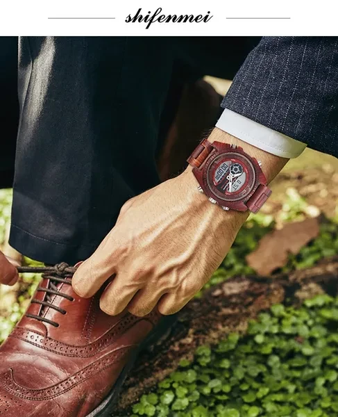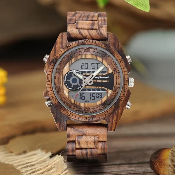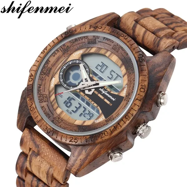 Shifenmei Digital Watch Men Top Luxury Brand Wood Watch Man Sport Casual Led Watches Men Wooden Wristwatches