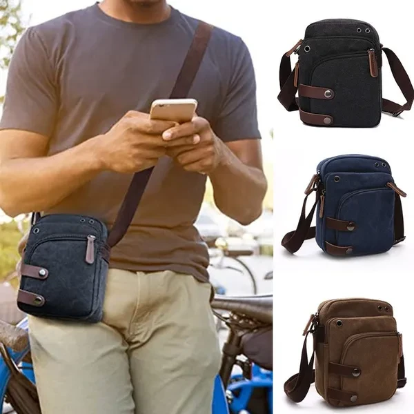 Small Canvas Messenger bag Cell Phone Purse Wallet Travel Crossbody Handbags for Men