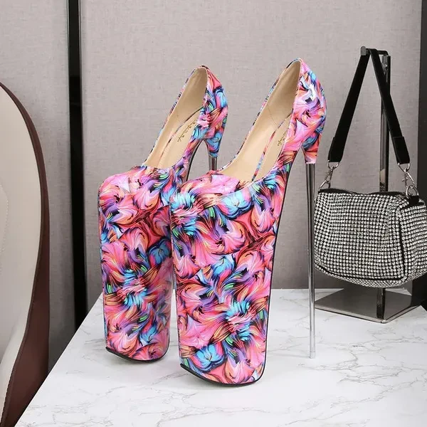 Spring Autumn Stilettos Catwalk Shows shoes woman 30cm Ultra Thin Metal High Heels wedding Pumps Female Crossdress Fetish Ballet Round Toe Flowers zapatos mujer