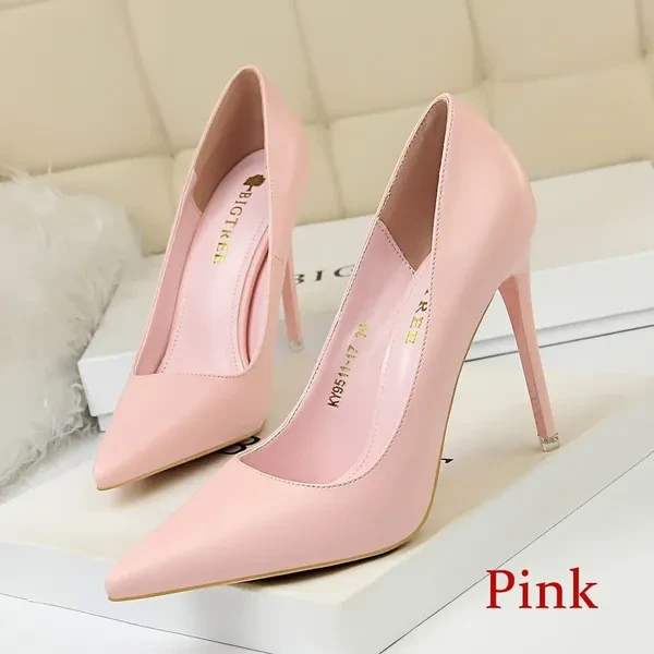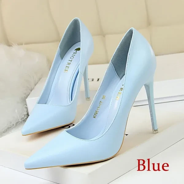 Production Category: High Heeled Shoes Inner Matrix: PU Leather Color: White, yellow, red, black, blue, gray, pink Size: 34, 35, 36, 37, 38, 39, 40 Heel Head: 10.5 cm Heel Shape: Stiletto Shoe Sole Access: Viscose Shoes Sole Matrix: Rubber Head Shape: Pointed Toe Upper Materiality: PU Leather