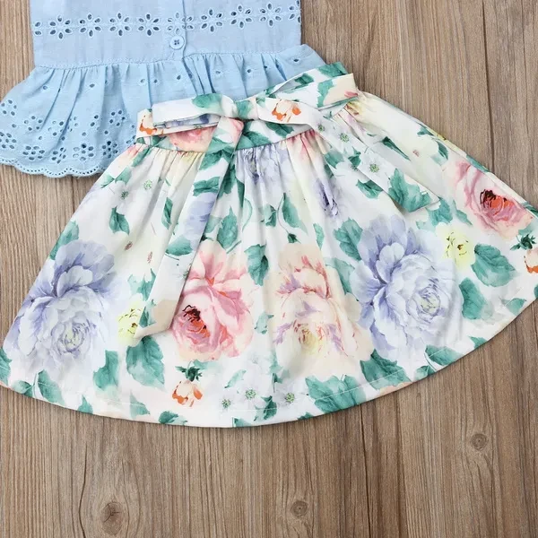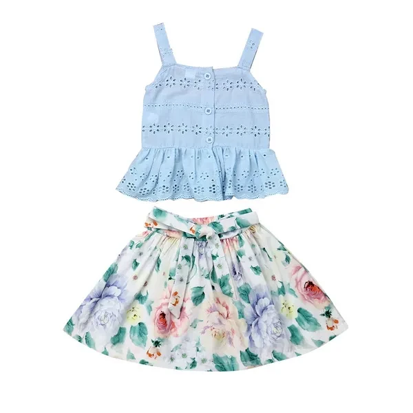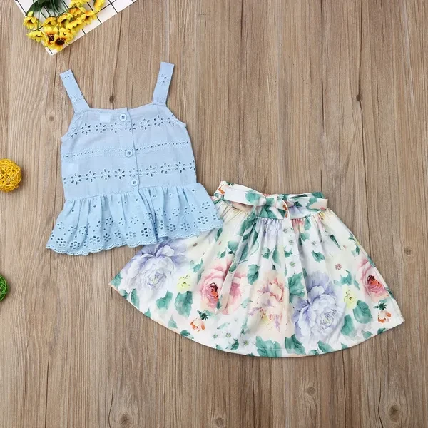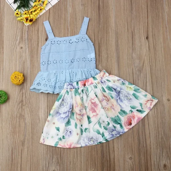 Summer Toddler Kids Baby Girl Strap Ruffle Tops Flower Print Skirt 2PCS Clothes Set 0-5 Years