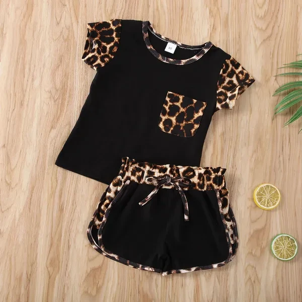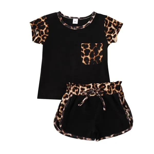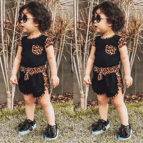 Toddler Kids Baby Girl Summer Outfits Short Sleeve T Shirt Top Leopard Shorts Pants Clothes Set