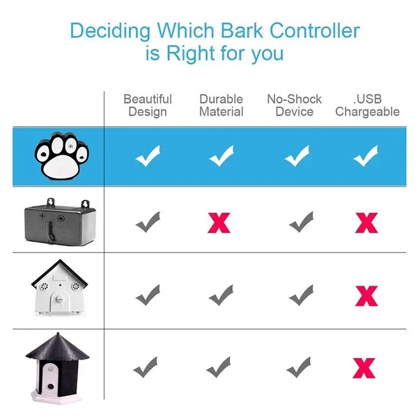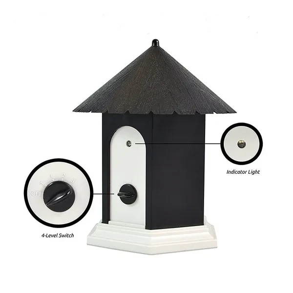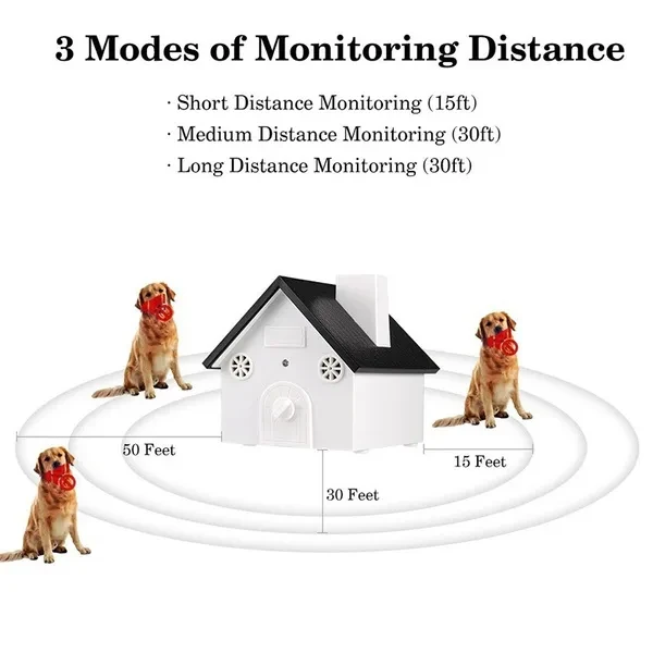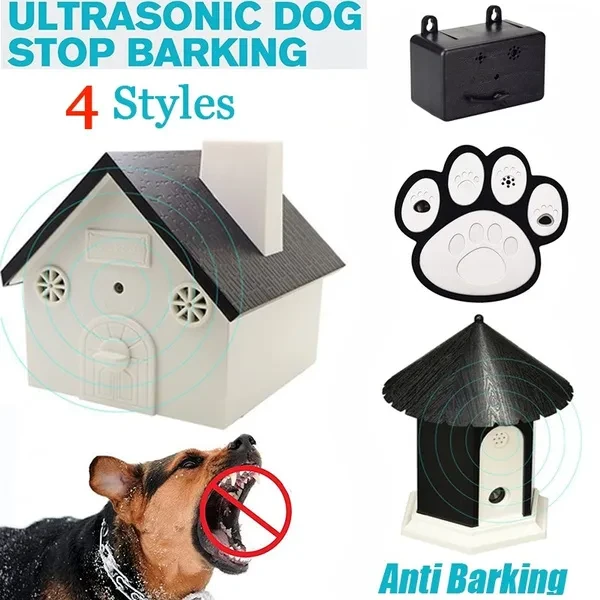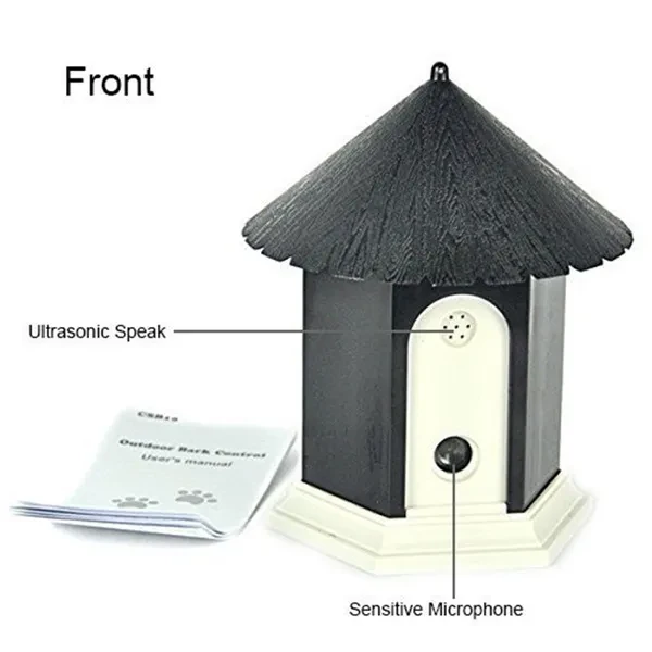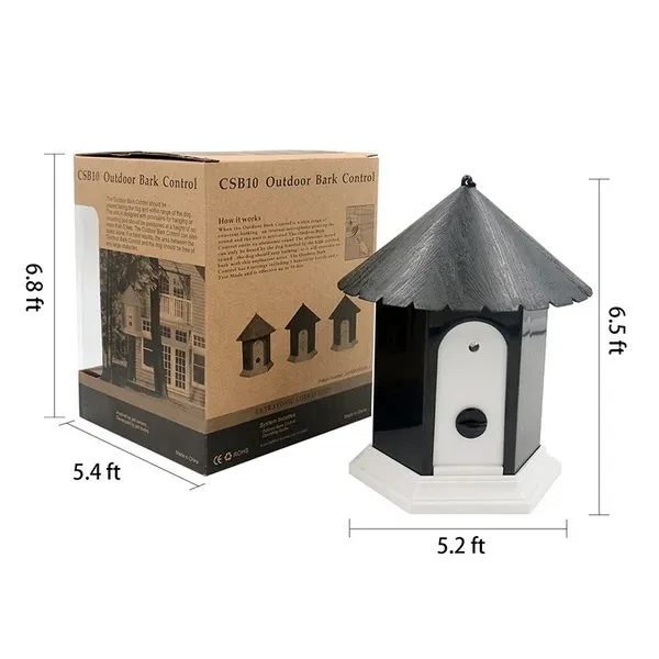 SIZE1:Rectangle Shaped SIZE2:Bird House Shaped SIZE3:House Shaped SIZE4: Dog paw Shaped Uses ultrasonic technology to stop barking, More effective and durable Sensitive microphone isolates and picks up barking up to 50 feet away to stop barking,for outdoor use Four adjustable ultrasonic volume levels – test, low, medium, and high, with LED battery power level indicator Safe and humane method of bark control, suitable for all breeds and sizes of dogs,except for deaf or hearing impaired dogs Pre-assembled, easy set-up, requires low maintenance, and weatherproof (but avoid exposing to very cold or very hot temperatures from 0°C~45°C, 32°F~113°F). Attractive and discreet birdhouse design looks great in your yard Color:Black Specifications: Material: PP Power: 1 * 9V Battery (Battery is not included) LED Color: Green / Red Modes: T: Verify the microphone and speaker are functional 1: Low range(Up to 15 feet) 2: Medium range(Up to 30 feet) 3: High range(Up to 50 feet) Item Size: Approx. 15.5 * 15.5 * 16.5cm / 6.1 * 6.1 * 6.5in (L * W * H) How does it work? Insert a standard 9-volt battery into the Ultrasonic Dog Bark Controller . The unit is automatically activated by the sound of barking. When the device is within the range of a barking dog, the microphone will isolate and pick up the barking to emit an ultrasonic sound to silence the dog. The anti-bark device has three range levels, including a test mode, and is effective up to 50 feet. Note: This product is only suitable for outdoor use. Dont touch by children. The product will not work on deaf or hearing impaired dogs. Human cannot hear the ultrasonic sound, however precautions should be taken when preparing the outdoor bark control for use. The Ourdoor Bark Contral is weatherproof.However,if water enters into the microphone it may disrupt the units operation. After the micorphone is dry it will resume working properly. Whats included: Ultrasonic Dog Bark Controller (battery not included) and user-friendly manual This merchant is committed to only offering products that comply with the General Product Safety Regulation.