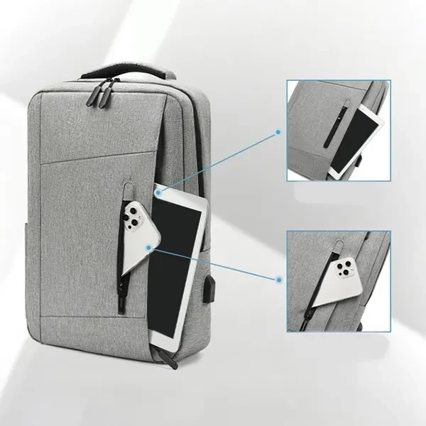 <p>Features: Design with a USB port, you can charge freely Quality material, lightweight, heavy duty, easy to carry. Soft and comfortable, wear-resistant material, durable. Breathable and stress-release adjustable shoulder strap, make your trip easier Large capacity, you can put 15.6inch laptops, books, cellphone, earphone in it, multifunction. Specifications: Material: Oxford Cloth Size: 41x30x10cm/16.14x11.81x3.94in Color: Light Gray/Dark Gray/Black/Blue Package Includes: 1x Backpack note: Please allow 1-2cm errors due to manual measurement, make sure that you do not mind before you order. Due to the difference between different monitors, the picture may not reflect the actual color of the item. </p>