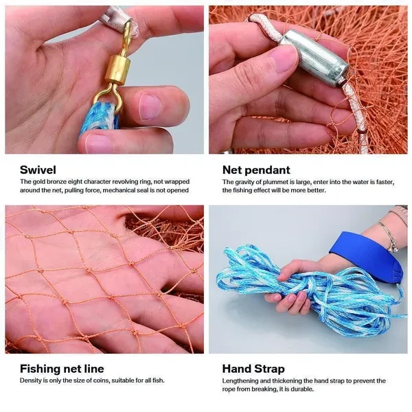 WIIPARA Fishing Nets Set included a Cast Net and a Landing Net Features and Benefits: ● Strong and durable material ● Upgrade the tire line hand throwing the net ● Nylon fishing net with sinkers, strong and easy to use. ● Forget about drawstring tangles: using this net will be much faster and easier than ever! ● Better spread due to uniform weight distribution - easier to cast ● The continuous weight line has a better seal on the bottom and allows the net to sink evenly ● Advanced assembly technique and high level of quality control leave little room for defects. ● Retaining the original fishing nets of the net pocket, you can cope with larger fish, mesh control can prevent small fish escape. ● There is a large throwing area, very suitable for fish ponds and field use. ● An essential fishing equipment for fishermen, help you get more fish. Specifications: Type: Cast Net Color: brown Material: Strong Nylon Diameter: 2.4M/3.6M/4.8M (8ft/12ft/16ft) Weight about: 1600g, 2000g, 2400g Cadt Hole size: 1.5cm Position: Sea, Lake, Pond, River, Stream fishing, etc Notice: 1. Please allow 1-3cm error due to manual measurement.Pls make sure you do not mind before you bid. 2. The color may have different as the difference display,pls understand. Package Included: 1x Cast Net 1x Landing Net