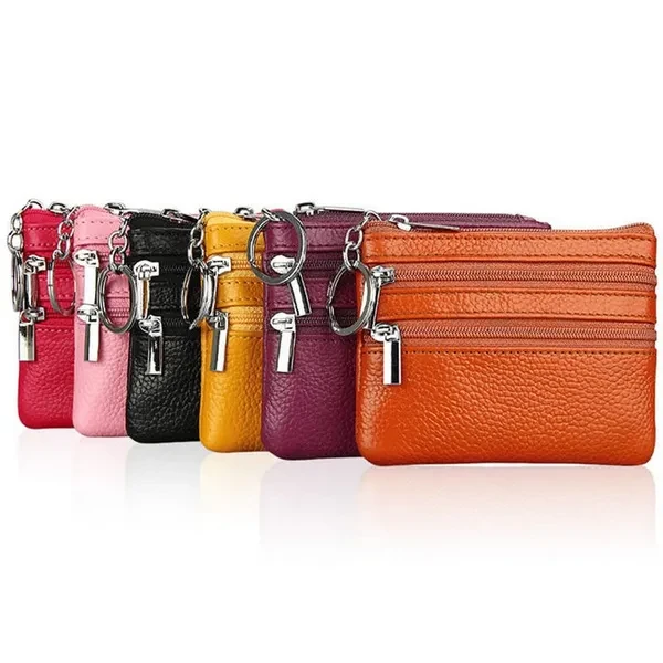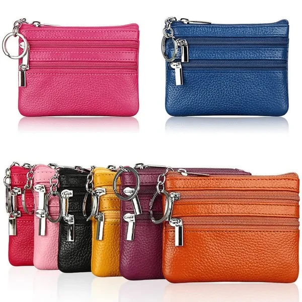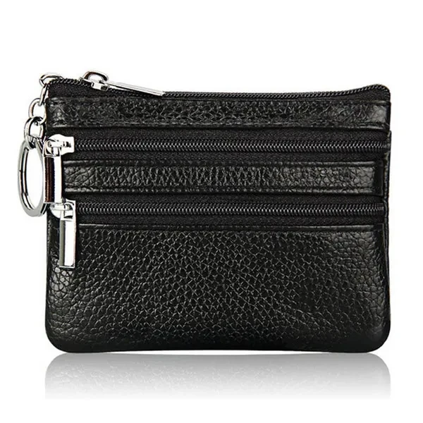 Women Men Leather Coin Purse Card Wallet Clutch Double Zipper Small Change Bag