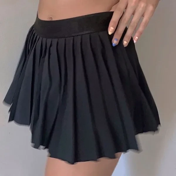 Women Solid Color Pleated A-Line Mini Skater Skirt with Safety Underpants High Waist Tennis School Girl Uniforms RTU