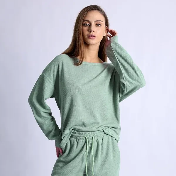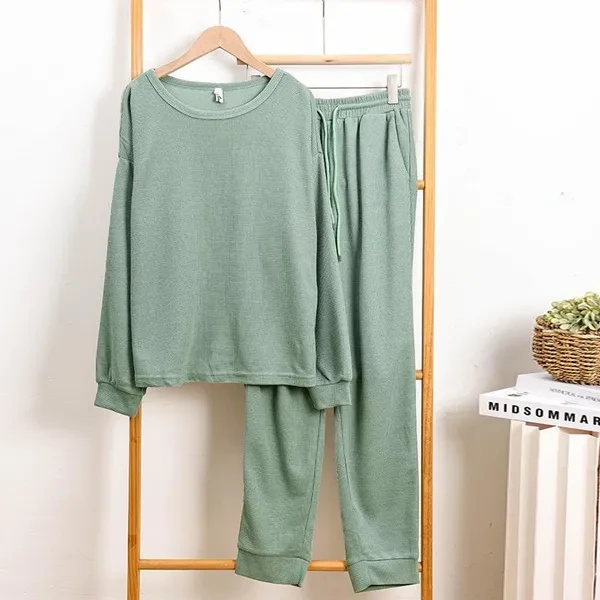 Women's 2 Piece Outfits Fashion Crew Neck Long Sleeve Pullover Top Wide Leg Pants Lounge Matching Sets Tracksuits Sweatsuit