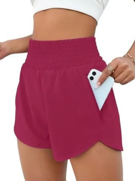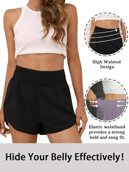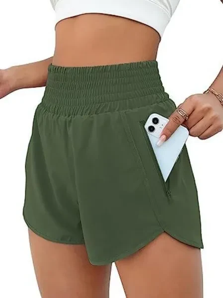 Women's Athletic Shorts High Waisted Running Shorts Pocket Sporty Short Gym Elastic Workout Shorts
