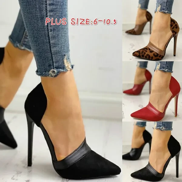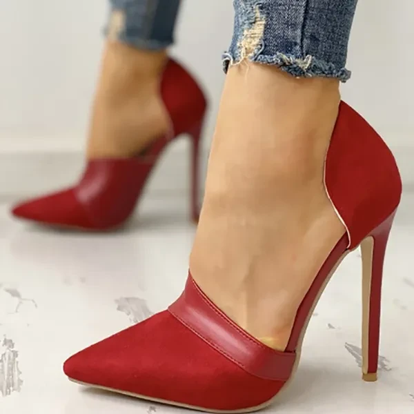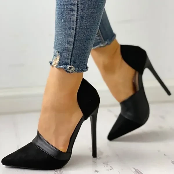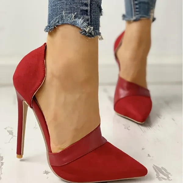 Women's Fashion Pointed Toe Suede & PU Heels Shoes Casual Thin Heel Pumps Shoes Spring Summer High Heel Stiletto Leather Sandals Womens Party Shoes