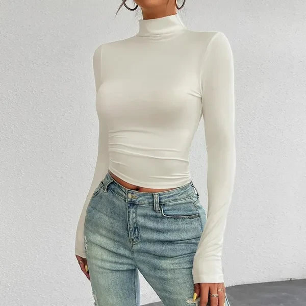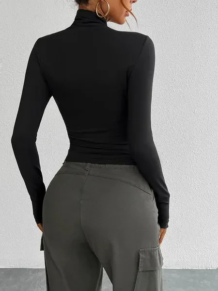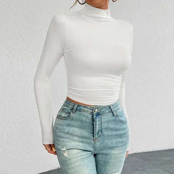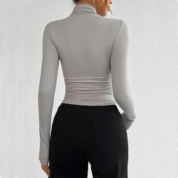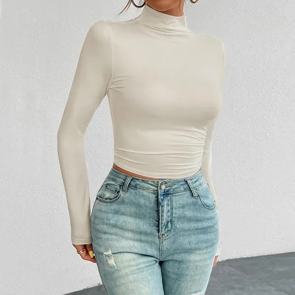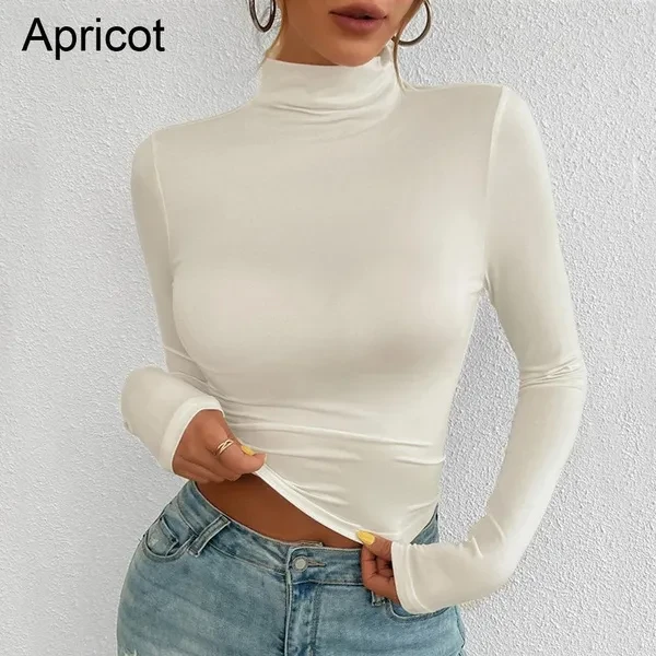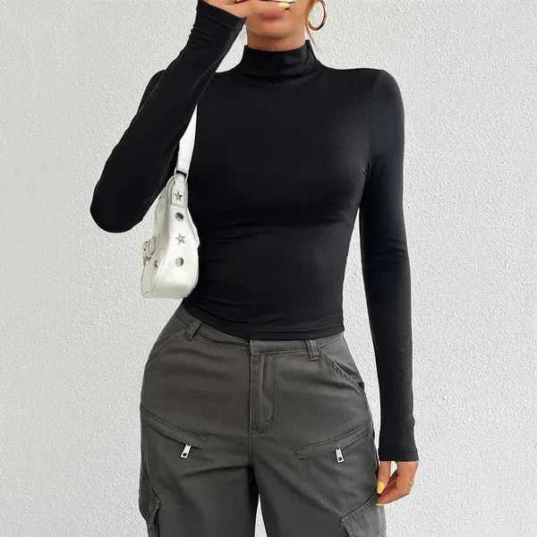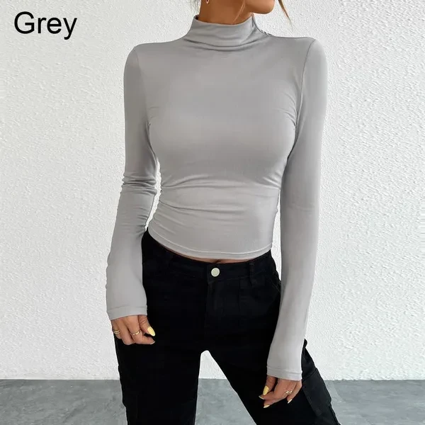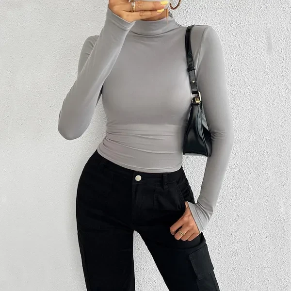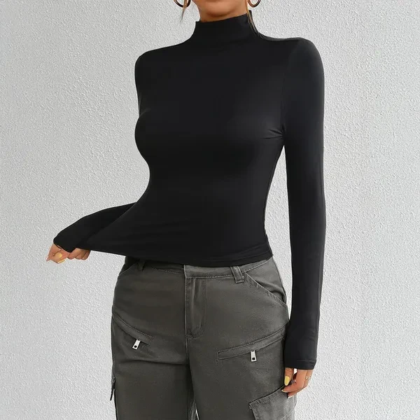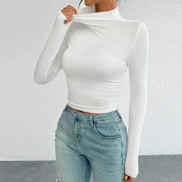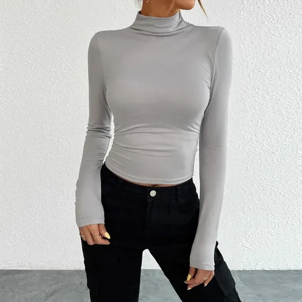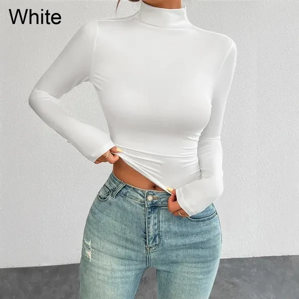 Women's Sexy Solid Slim Fit Round Neck Long Sleeve T-shirt Ladies Casual Base T-shirt Fashion Soft Bottoming Tops